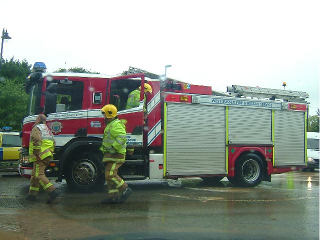 | Fire crew leave the appliance and inspect the bridge. Within 5 minutes the traffic is allowed through with no mishaps. By now there is gridlock throughout the area with traffic queued for over 2 miles on both the A272 and A286. Towards Chichester, on the A286, the traffic was queued back to Cocking Village.!!