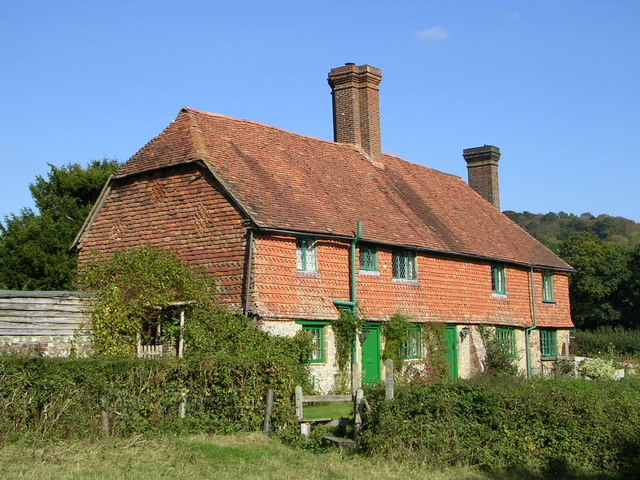 Attractive tile-hung houses passed by public footpath 1256 photo, text:- Mark Percy - - 5 October, 2007 - - next gallery image |