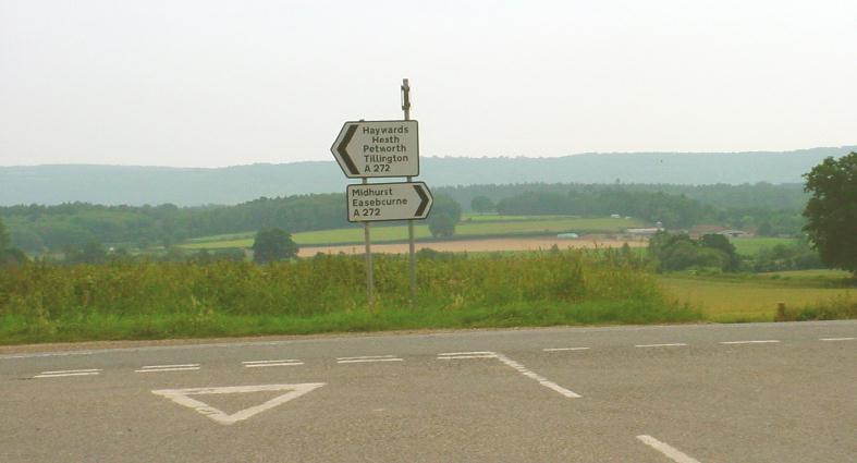 Midhurst to the right, Petworth to left, Halfway Bridge Pub few hundred yards to left. photo:- Colin Smith - 16 July, 2006 - - next trail image |