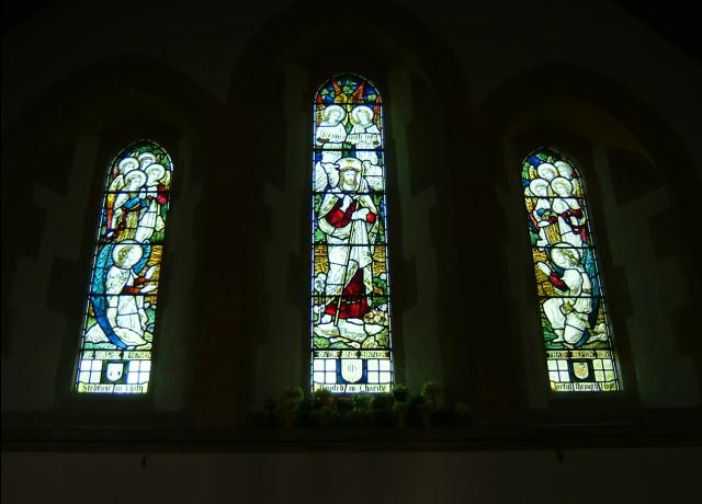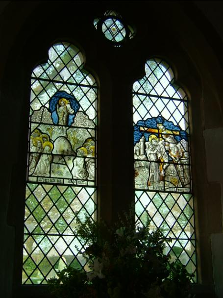 photo:- Phil Dixon - - 12 April 2007 - - next gallery image - - enlarge image East window - ' The Good Shepherd, surrounded by angels' - James Powell & Sons 1897 |