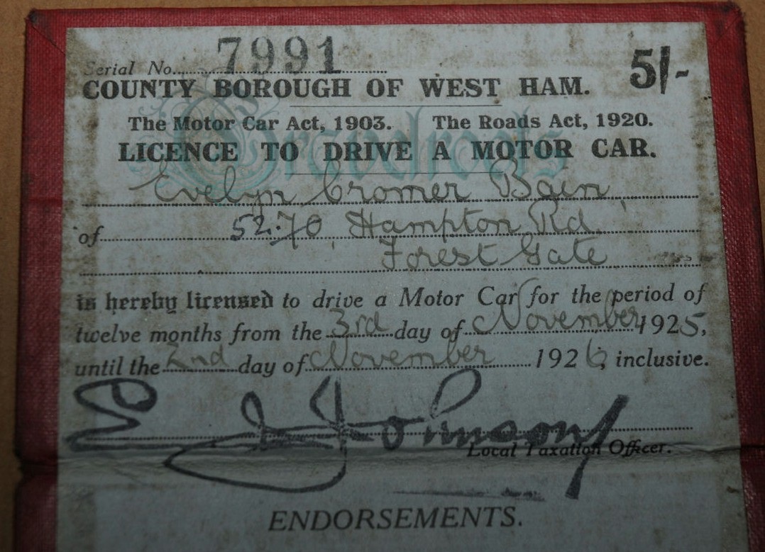 Issued to Evelyn Cromer Bain, Hampton Road, Forest Gate