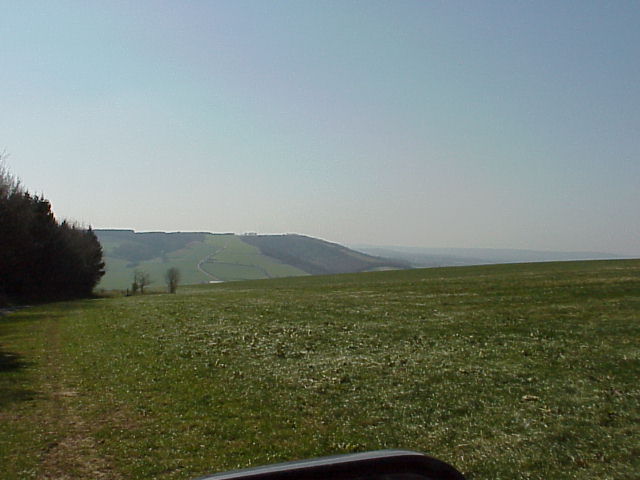 Over the Downs above Cocking - looking west - Cocking chalk quarry is to the right.