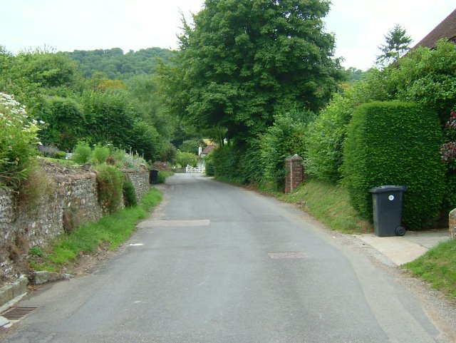 The Street, Graffham, Ladywell Cottage ahead & Church Hill to left.