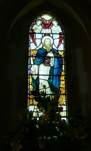 photo:- Phil Dixon - - 12 April 2007 - - next gallery image - - enlarge image East window - ' The Good Shepherd, surrounded by angels' - James Powell & Sons 1897 |