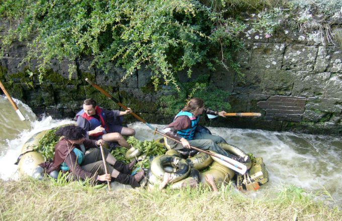 crew:- Taff Williams, who has manned Pompey Lil since it was built [by Ron dudman of Heyshott] except when he was in the Falklands. [Then his wife Sara led an all female crew] Chris Searle, Suzie Campbell, & Jonny Campbell Photo- Pam Hadley - - - next raft race image |