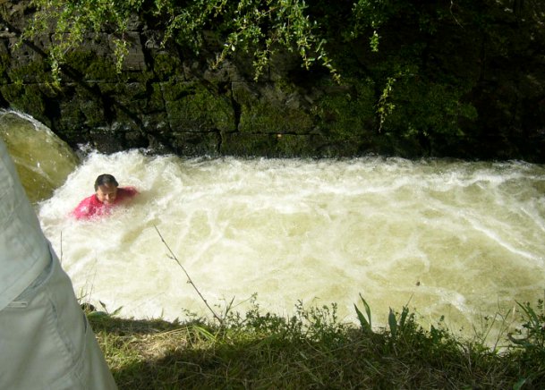 | Fish Ladder - Pompey Lil, team member Suzie Campbell ends up in water.